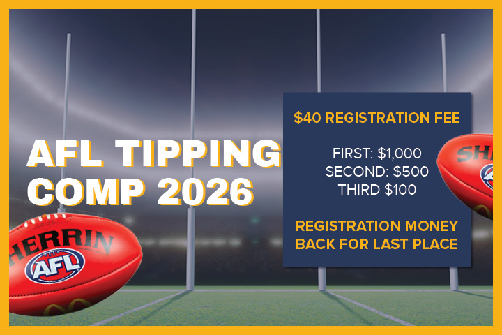 Our NRL Tipping Competition is back on again this year, come and see our friendly staff and sign up today! Entry fee is $40, first prize is $1,000, second prize […]